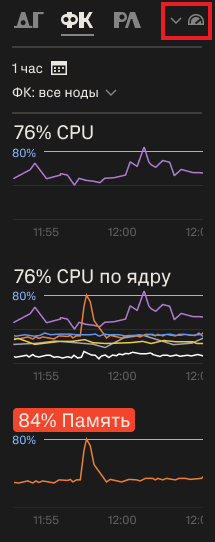Для быстрого перехода к данным мониторинга в панели быстрого доступа доступна иконка мониторинга. Показатели, превышающие пороговые значения отображаются красным.