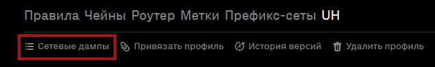 Для профиля сессионного модуля доступна функция сохранения и загрузки сетевых дампов. В верхней панели необходимо нажать Сетевые дампы.