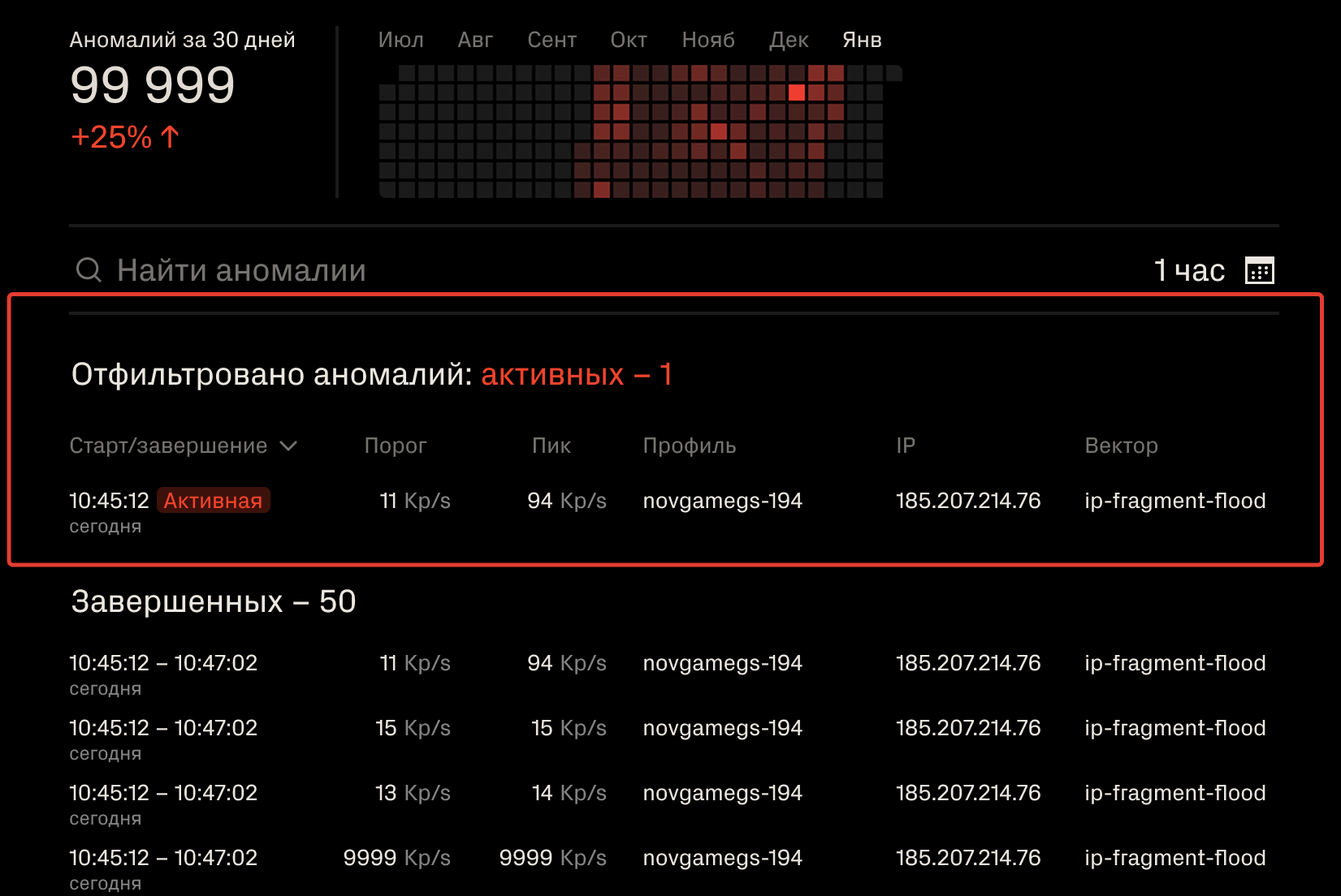Активные аномалии теперь всегда показываются в начале дашборда.