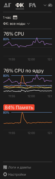Для каждой ноды теперь доступны отдельные графики загрузки.